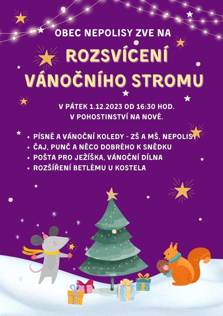 Pojďme společně zahájit adventní období letošního roku. Sejdeme se v pohostinství Na Nové, kde svá vystoupení představí žáci místní ZŠ a MŠ, Nepolisy. Příchozí budou mít možnost manuální seberealizace ve Vánoční dílně a ten kdo zapomněl napsat přání pro Ježíška, bude mít také příležitost. Po kulturním programu se přesuneme ke kostelu Sv. Máří Magdalény kde společně rozsvítíme Vánoční strom a již tradiční betlém, který se nám letos opět rozroste...