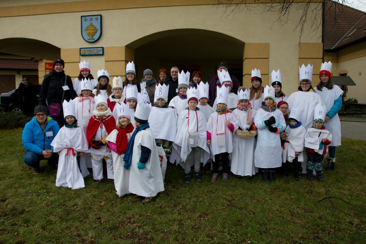 Děkujeme všem rodičům, dětem a Základní škola a Mateřské škole, Nepolisy za "nábor" koledníků. Všem našim sousedům děkujeme za vřelá uvítání u svých stavení a za poskytnuté finanční dary. Ještě jednou... " a my taky vystupujem a Nový rok Vám vinšujem."