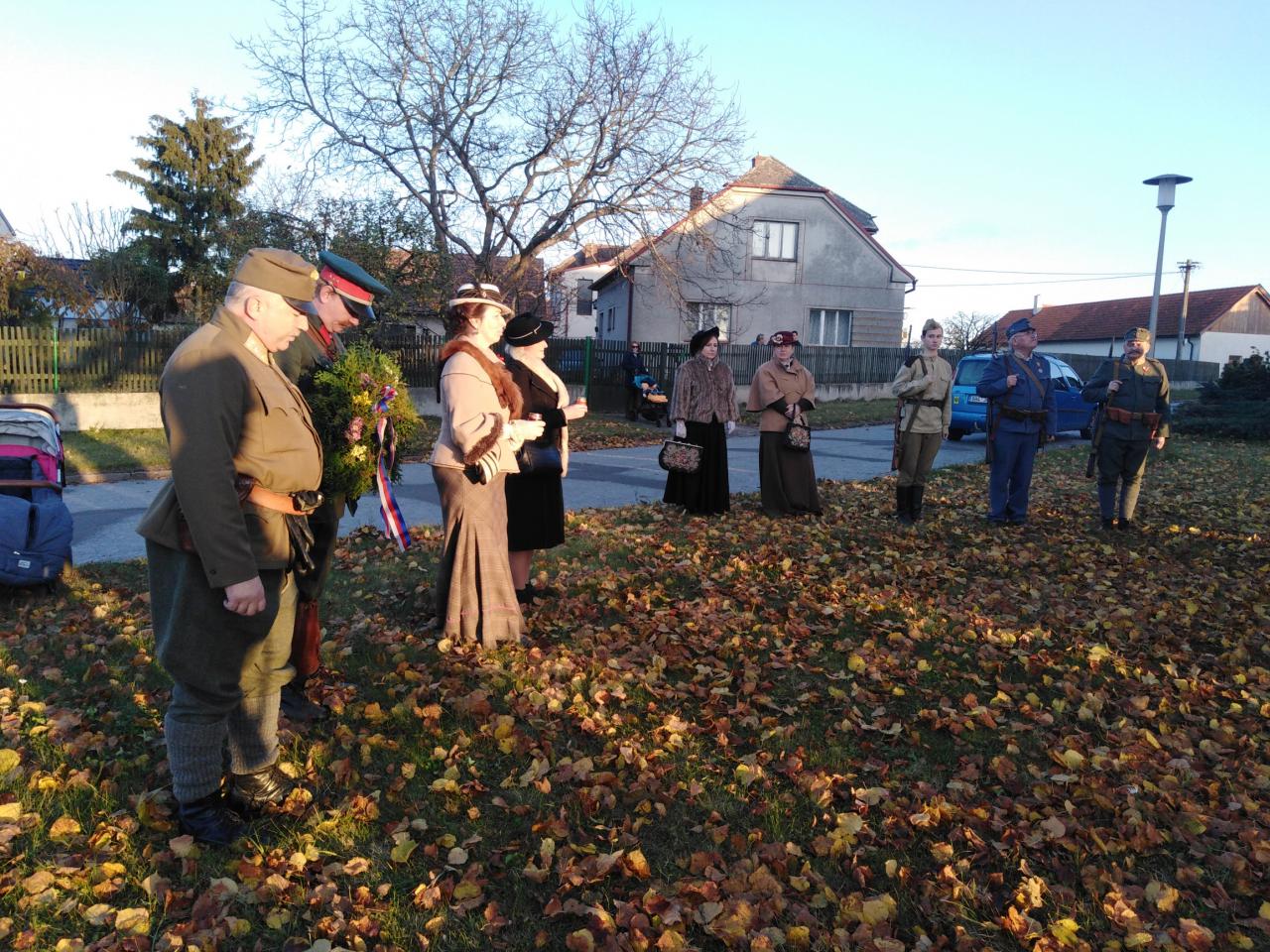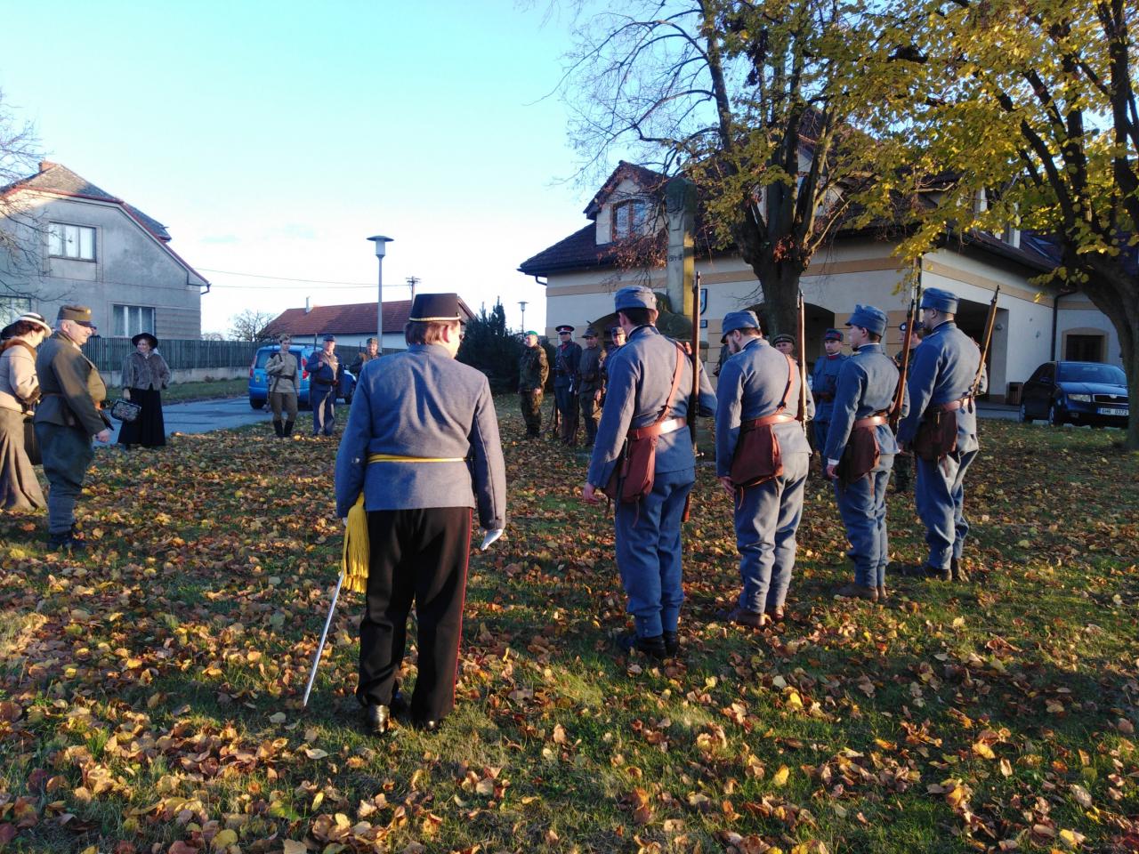 Fotografie z průběhu pietního aktu ku příležitosti výročí ukončení I. sv. války v Nepolisech a Zadražanech.