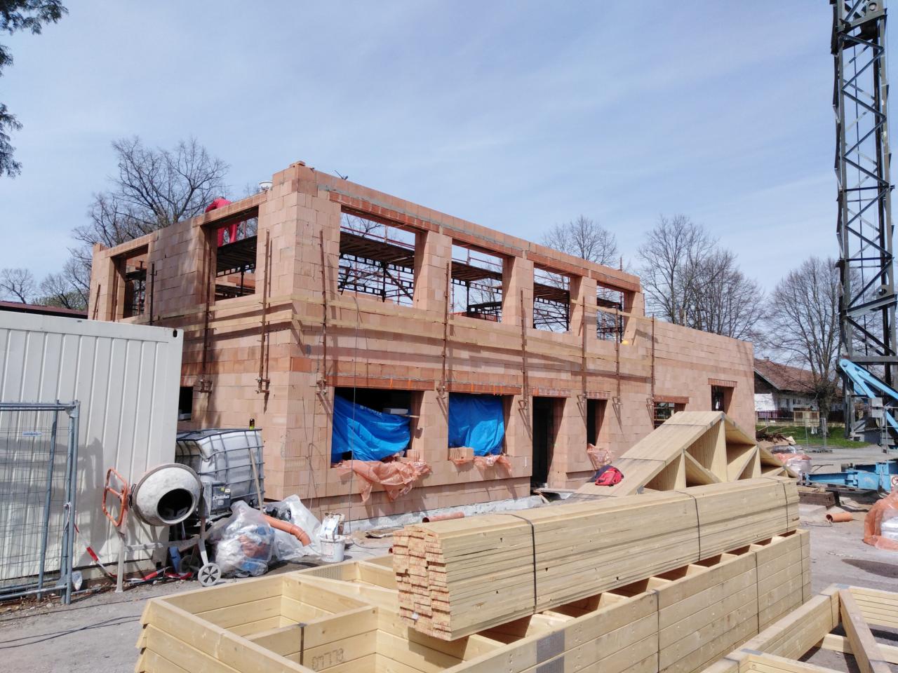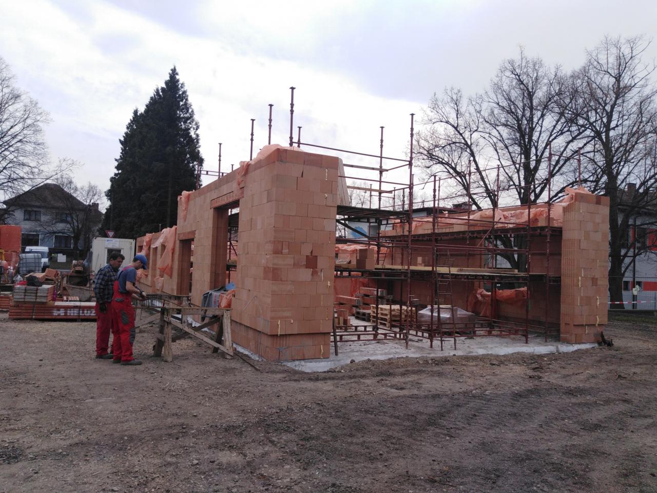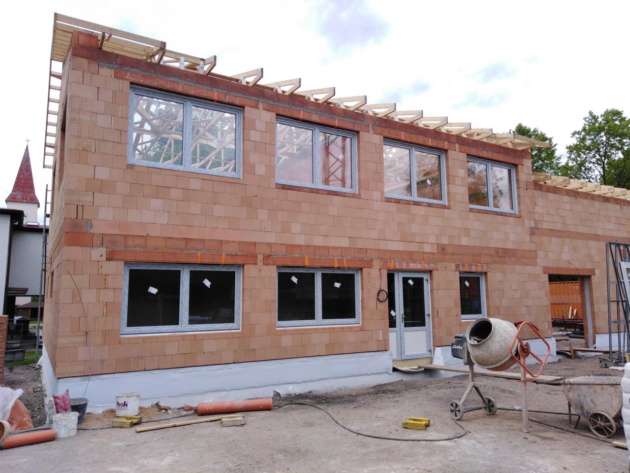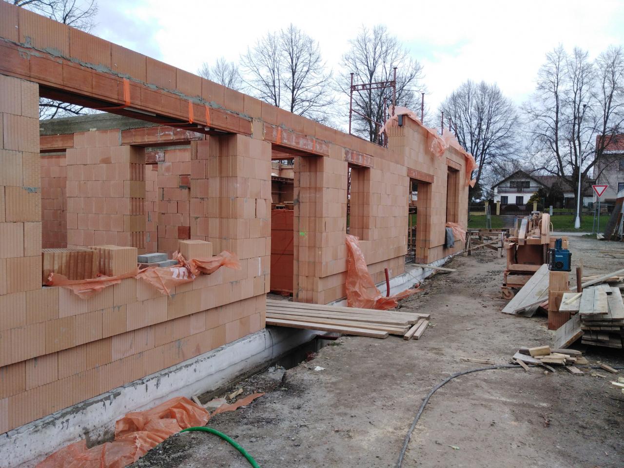 Fotografie z ledna až listopadu 2021 - průběh prací na rekonstrukci a přístavbě požární zbrojnice.