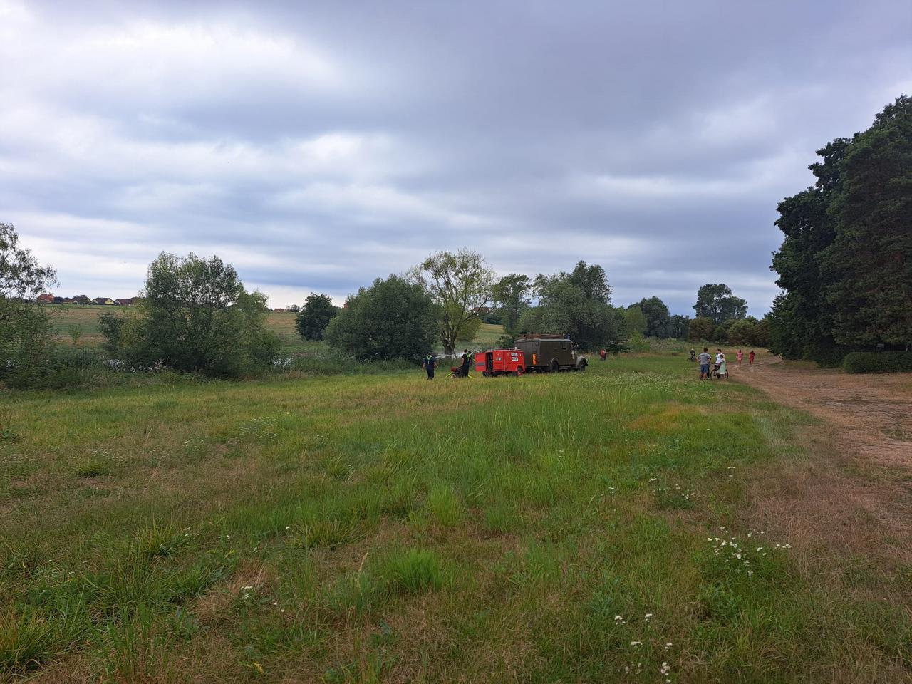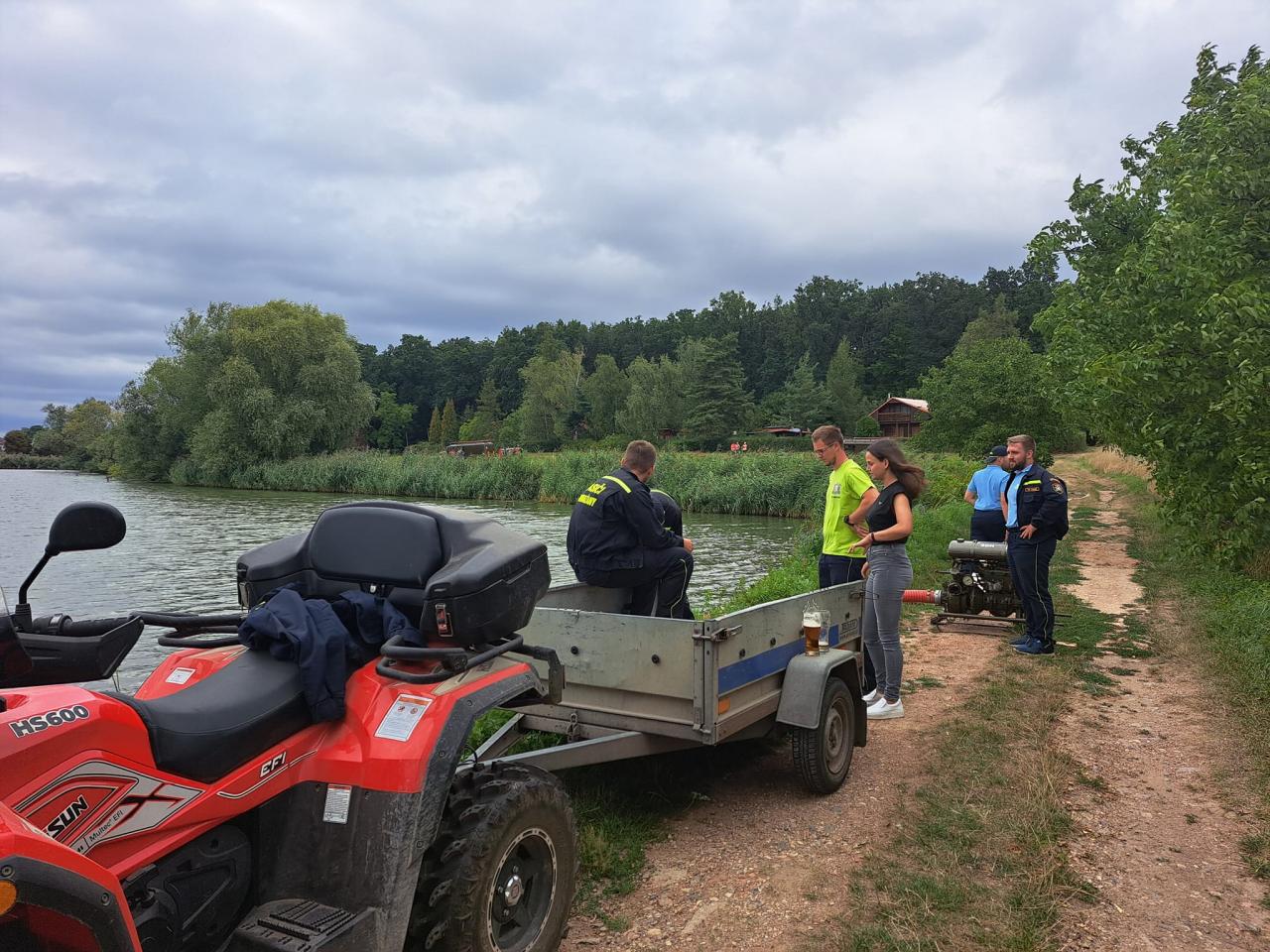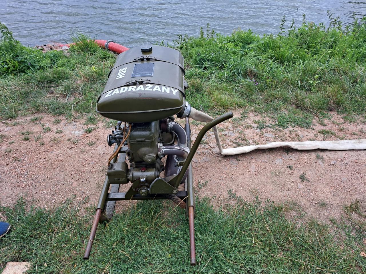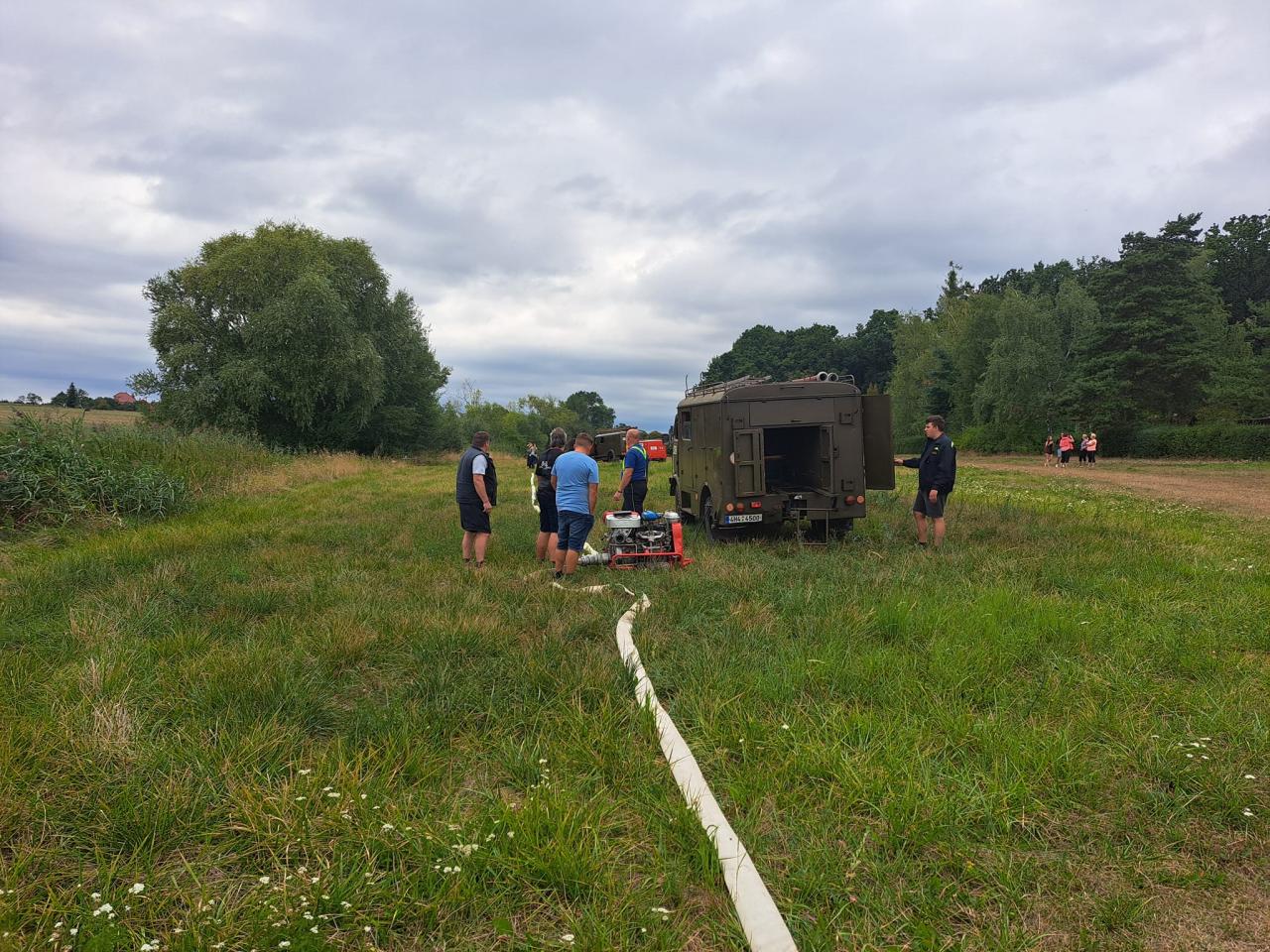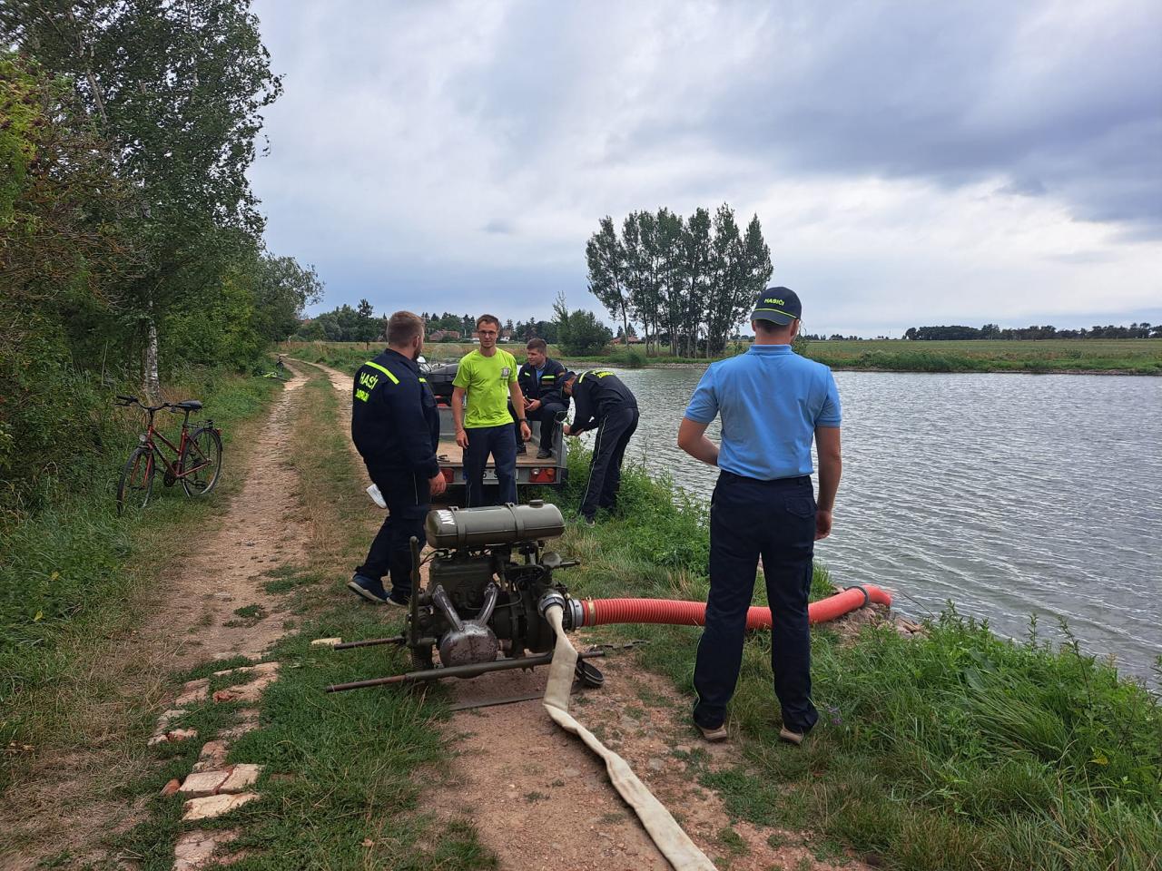 Fotografie od paní Michaely Hanušové z akce, ve které místní jednotky SDH Luková, SDH Nepolisy a SDH Zadražany prověřili možnost zajištění dálkové dopravy vody u rybníku Beran.
