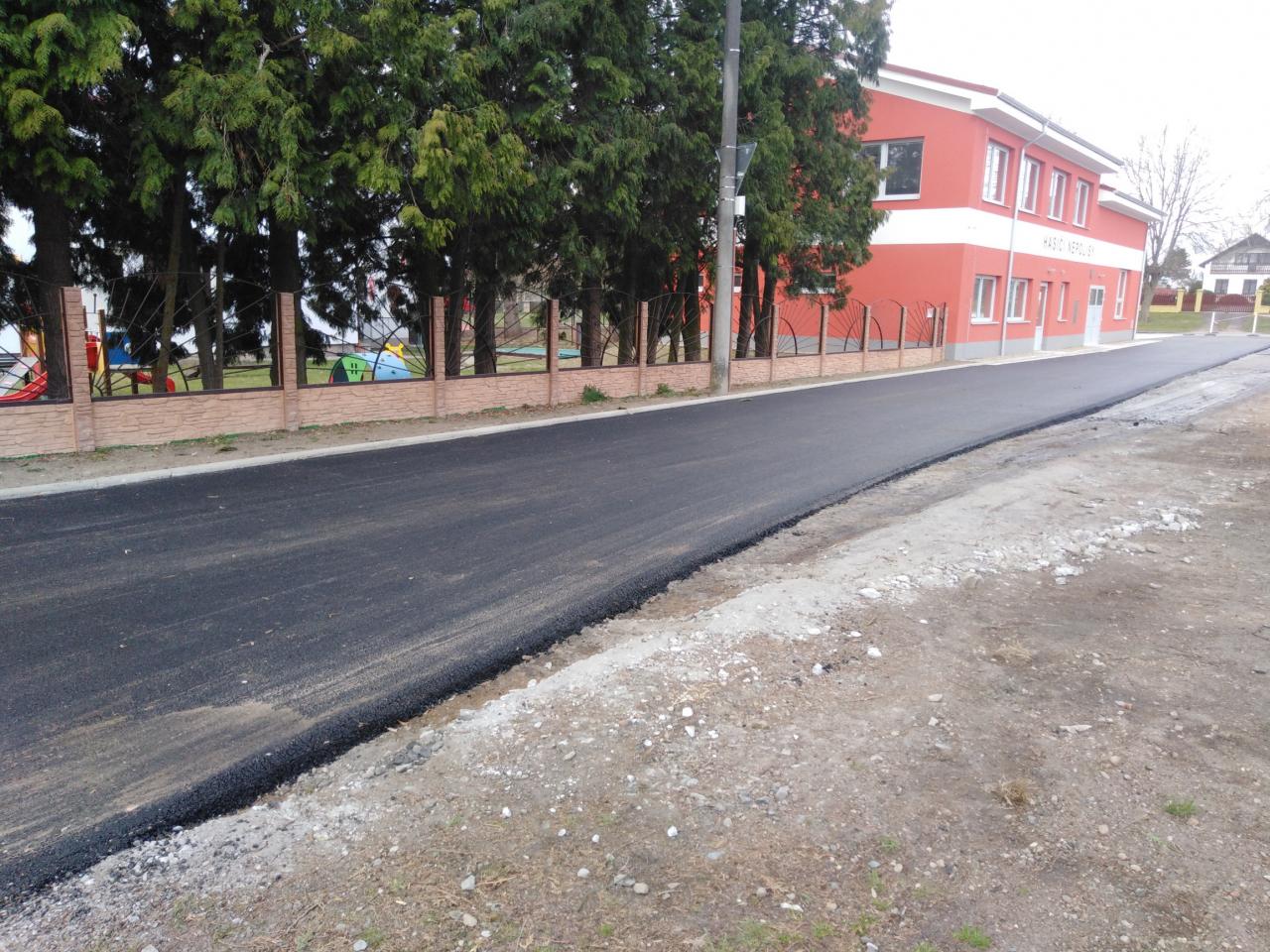 V jarních týdnech letošního roku obec financovala kompletní opravu místní komunikace u požární zbrojnice v obci. Na komunikaci navazuje plocha parkoviště, které je hojně využíváno v ranních a odpoledních hodinách pro odparkování osobních aut rodičů, kteří vezou své děti do blízké školky a školy.