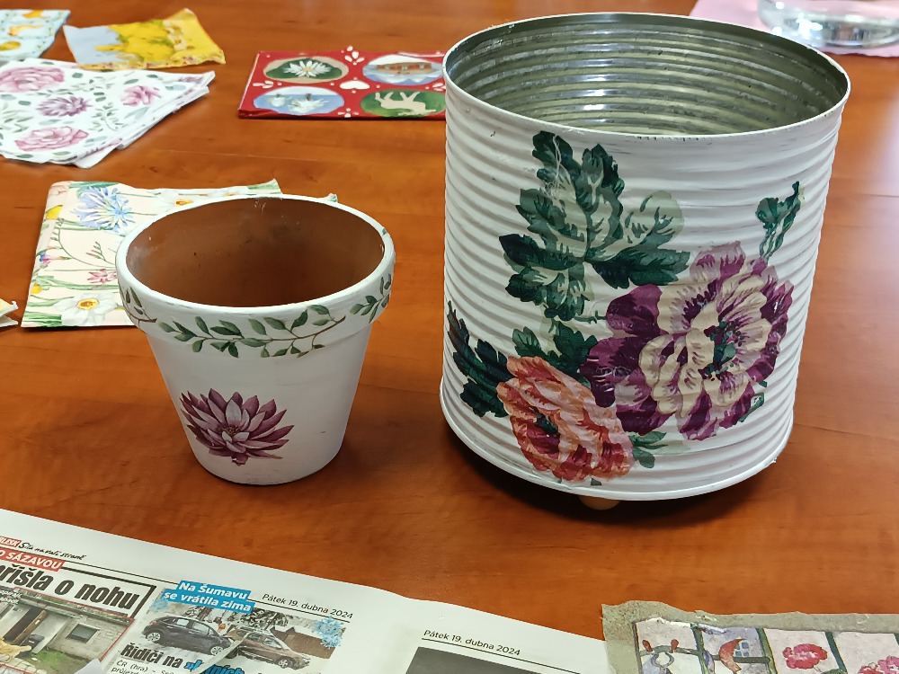 Dílna ubrousková technika 4. 6. 2024 se moc povedla. Do naší dílny zavítaly také zájemkyně z okolních vesnic, což nám udělalo velikou radost. Podívejte se, jaké pěkné tvoření si domů odneslo 16 účastnic. Velké díky lektorce Štěpánce Novotné. L. Vejvodová