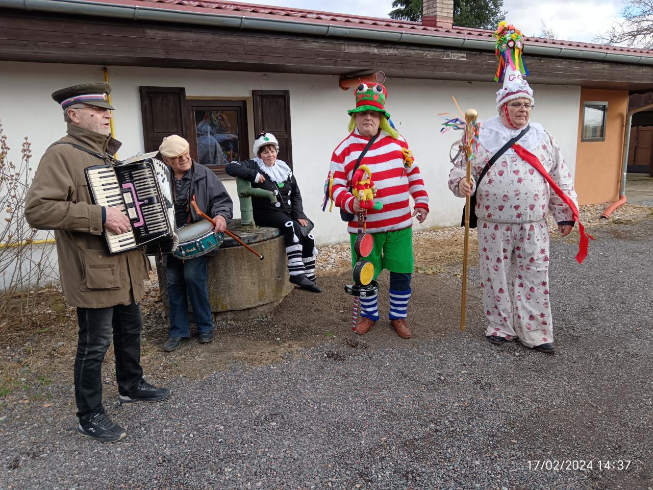 Nadšenci pod vedením paní Ludmily Motyčkové prošly za příjemného jarního počasí ulicemi obce v masopustních převlecích a připomněli starou tradici.