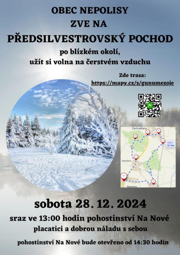 V sobotu 28.12.2024 se v odpoledních hodinách v okolí obce uskutečnil další ročník Předsilvestrovského pochodu. Pochod o délce 8 km absolvovalo přes 40 účastníků všech věkových kategorií. Děkujeme paní Lucii Vejvodové a Zuzaně Sedláčkové za zajištění trasy a poskytnutí fotografií.