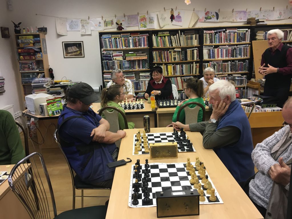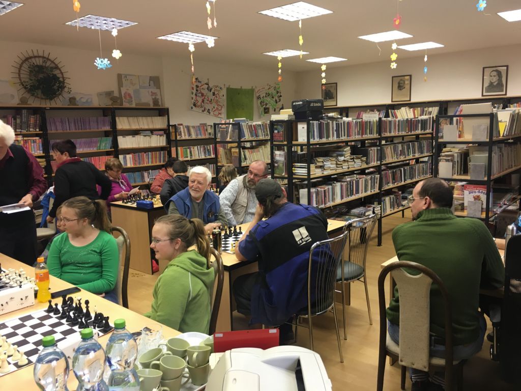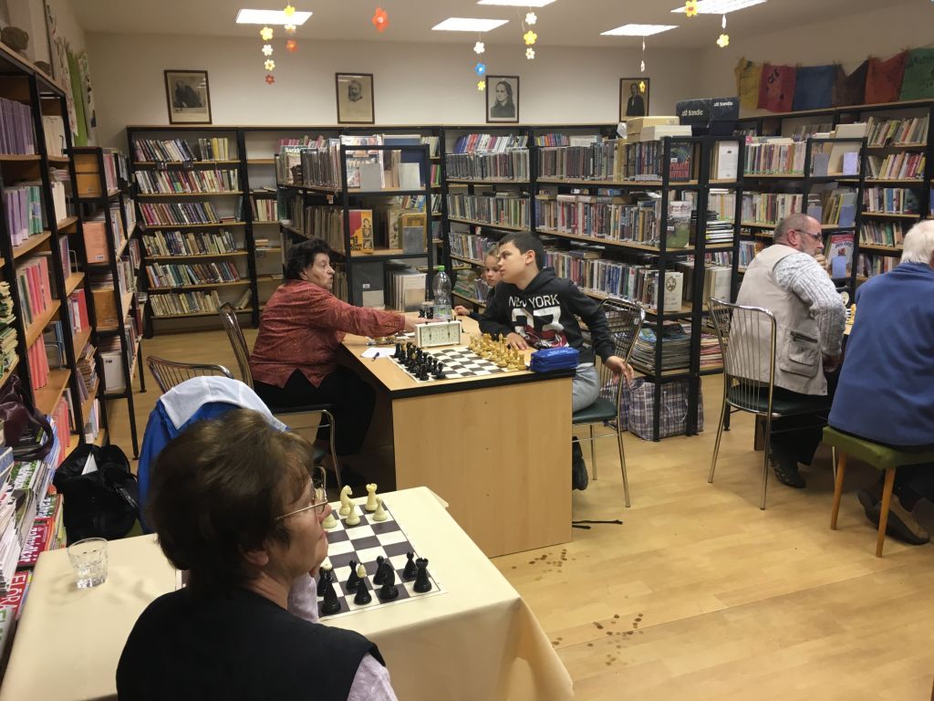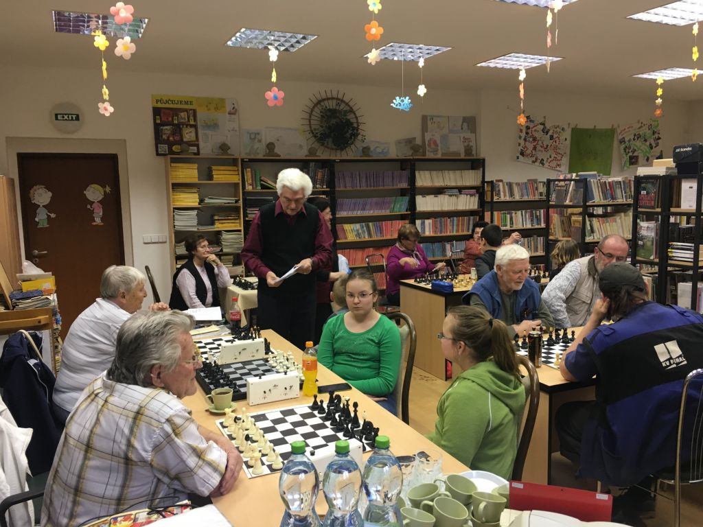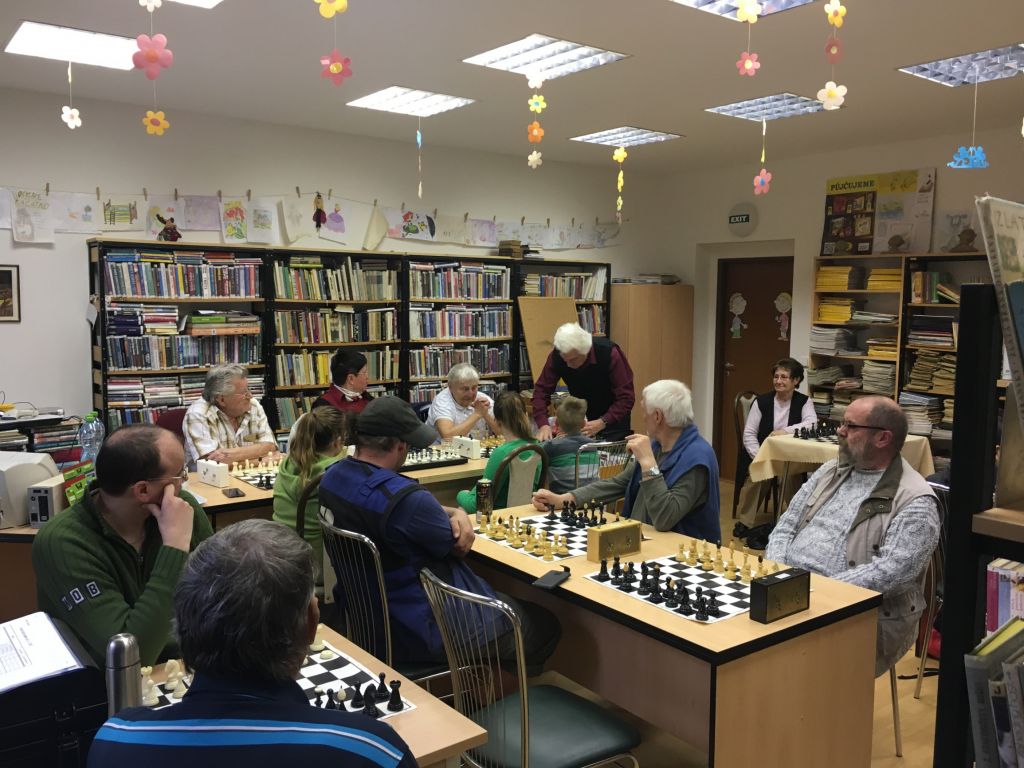 Dne 13. 4. 2018 se v knihovně konalo 1. šachové utkání mezi kroužkem Nepolisy a kroužkem Mekka Nový Bydžov, oba kroužky vedl pan Ing. Miroslav Čutka. Kroužek Mekka Nový Bydžov je při Klubu Důchodců a přijeli tedy členové tohoto kroužku, jejichž průměrný věk je okolo 70ti let a představte si, že nás porazili výsledkem 4,5 : 3,5. Přijela parta opravdu bezvadných lidí, velice dobře se nám s nimi hrálo, i jsme si popovídali a děti – naši členové, které také hrály, byly spokojené a turnaj se jim velice líbil. V květnu jsme si zahráli odvetu v Novém Bydžově.