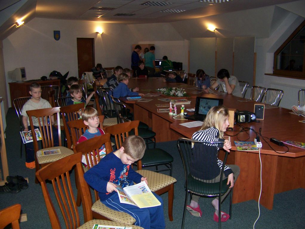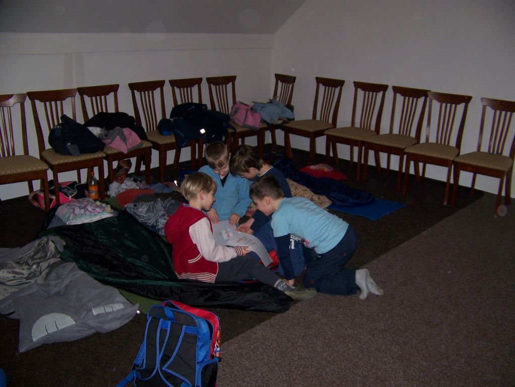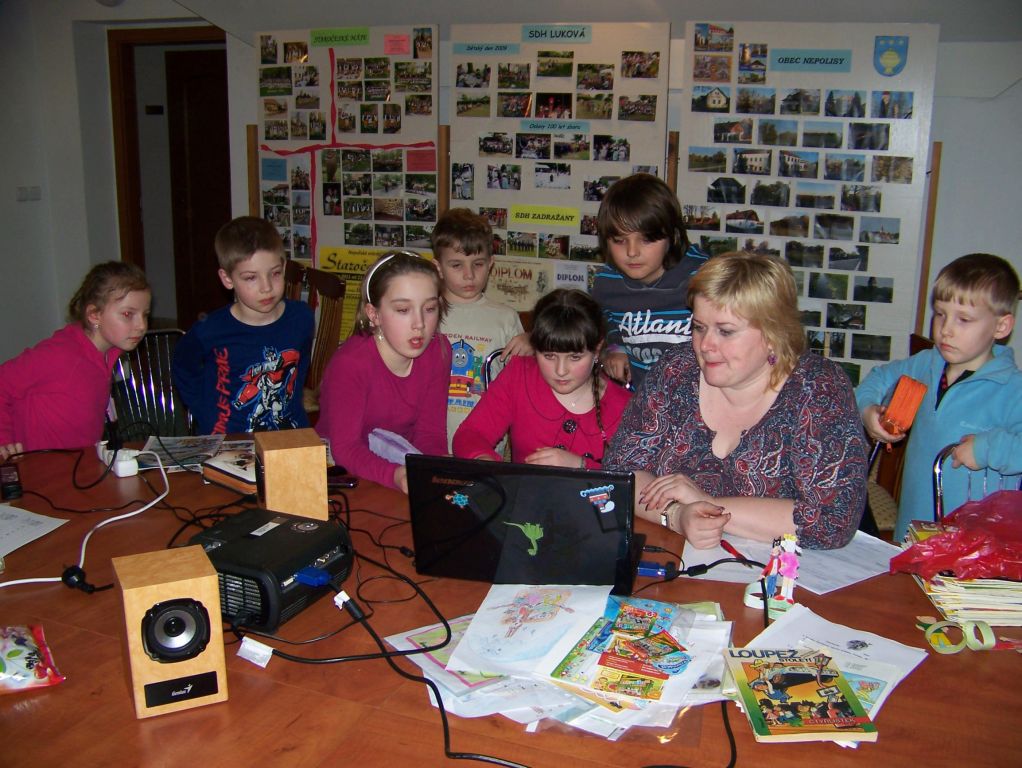 Již 6. rokem jsme se sešli v hojném počtu v knihovně při celorepublikové akci Noc s Andersenem. Letos jsme to pojali ve stylu komiksového časopisu Čtyřlístek. Jako vstupné do knihovny všech 42 dětí přineslo vlastnoručně nakreslený obrázek Myšpulína, Bobíka, Pindi či Fifinky. Hned v úvodu jsme společnými silami zasadili strom Pohádkovník, který jsme pojmenovali Fifinka. Celý večer jsme hráli hry, děti vyrobily záložku do knihy, skládaly báseň pro Andersena, malovaly si na obličej veselé motivy, skládaly puzzle na PC, sledovaly dokument o ilustrátorovi J. Němečkovi. Před půlnocí jsme povečeřeli palačinky a úderem půlnoci jsme se vydali na stezku odvahy. Večer jsme zakončili polštářovou bitvou a znaveni ulehli do pelíšku. K snídani jsme měli vynikající koláče pečené od maminek. Domů jsme odcházeli sice trochu znaveni, ale plni skvělých zážitků. Již se těšíme na příští rok, na večer, který přináší nevšední zážitky.