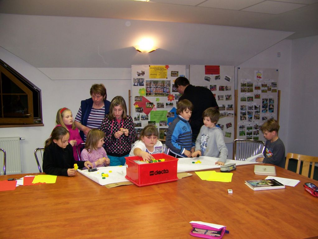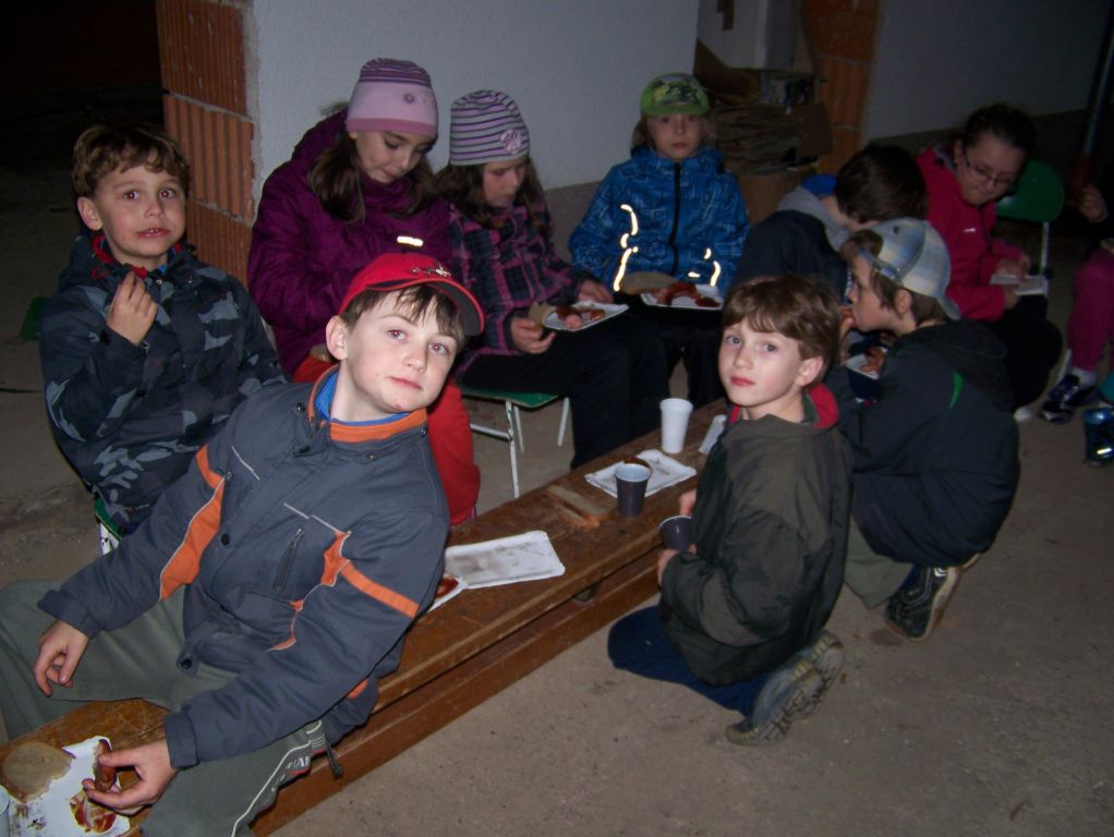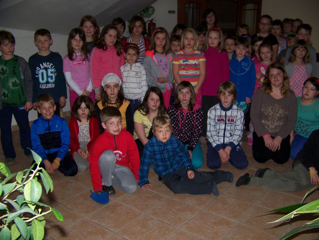 Tentokrát se naše noc nesla v duchu pana pohádkáře Hanse Christiana Andersena, který nás přišel navštívit a vyprávěl nám o svém dětství, o svém životě i psaní. Ve velice krásném vyprávění nechybělo také vyprávění pohádky „Křesadlo“, no povím vám, že takové povídání a vyprávění od pana Andersena bylo opravdu překrásné a kouzelné, že všechny děti poslouchaly a byly velice pozorné (a to i když poznaly, že naším panem Andersenem v přestrojení nebyl nikdo jiný, než sám pan starosta). Po tomto setkání následovalo čtení pohádky od pana Andersena, a jak tak čas utíkal, měli jsme co dělat, abychom stihli ještě plno úkolů. Šest skupin dětí muselo vystřídat 6 stanovišť a plnit různé úkoly, např. vyrábět Ošklivé káčátko, vyplnit kvíz o panu Andersenovi, shlédnout pohádky, vyřešit případ pana Vrťapky, vypracovat úkoly z knížek pana Andersena, namalovat maskota Veverušáka nebo napsat příběh či básničku. A to už se nám blížila půlnoc, tak jsme se šli posilnit před stezkou odvahy, která byla ohrožená kvůli počasí, ale naštěstí už nepršelo a konala se. No řeknu vám, že někteří spáči naší noci byli tak unavení, že usnuli hned, hlavně ti nejmenší, ale někteří byli plní dojmů a švitořili až do rána.
